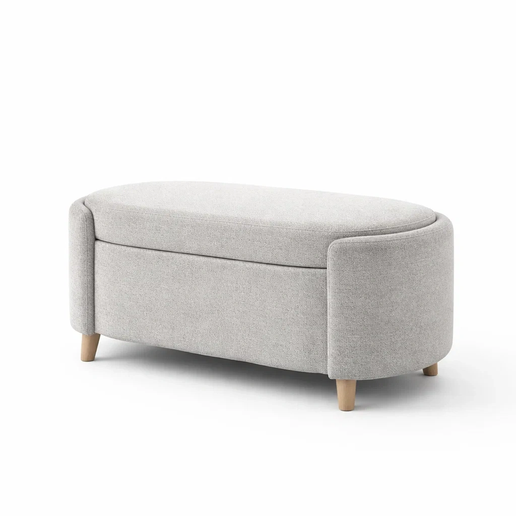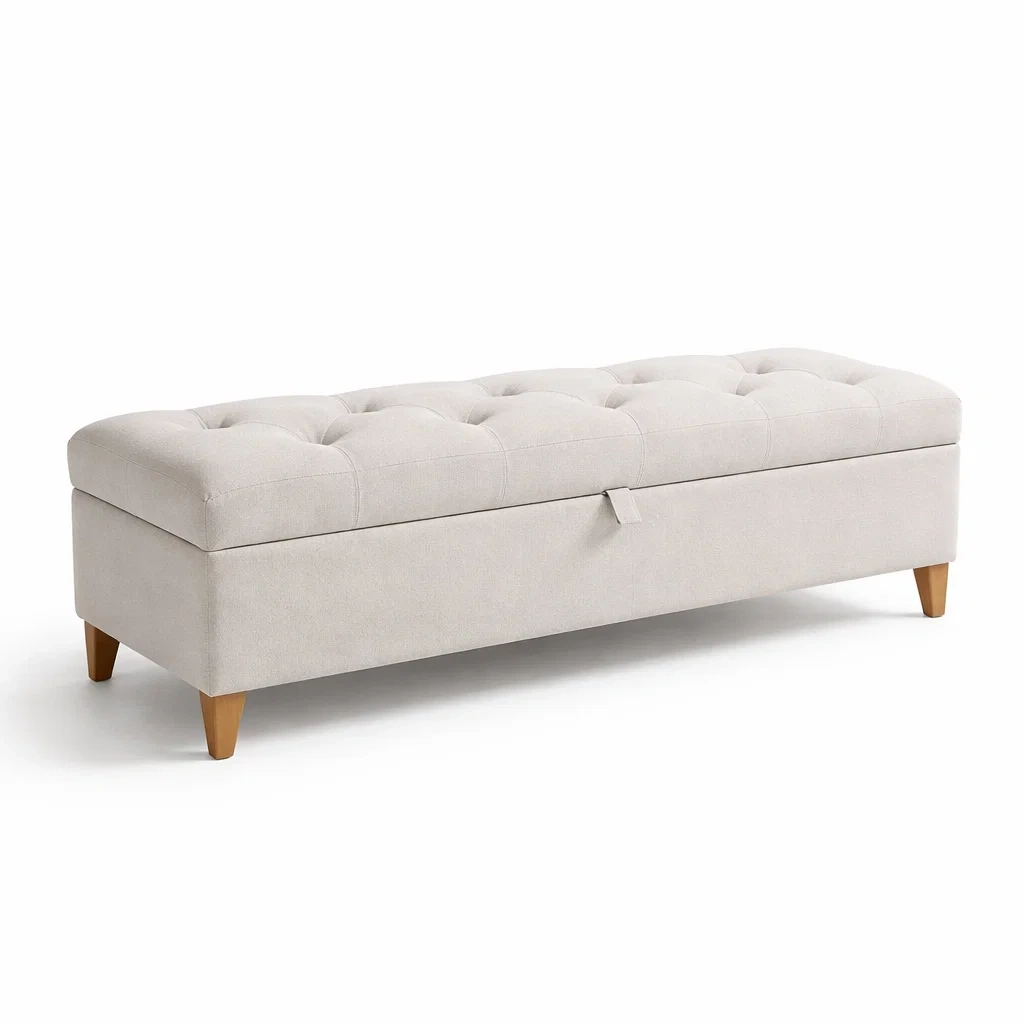 Sitzbank mit stauraum leinen beige kiefernholzbeine