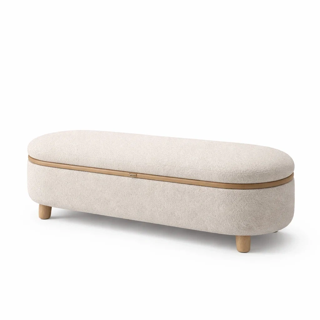 Sitzbank mit stauraum polyester creme holzfüße 140x45x40 cm